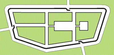 Abb. 12 - Die erforderliche Sicherheitszone mit dem verbleibenden Innenbereich des ersten Feldlagers in Novaesium